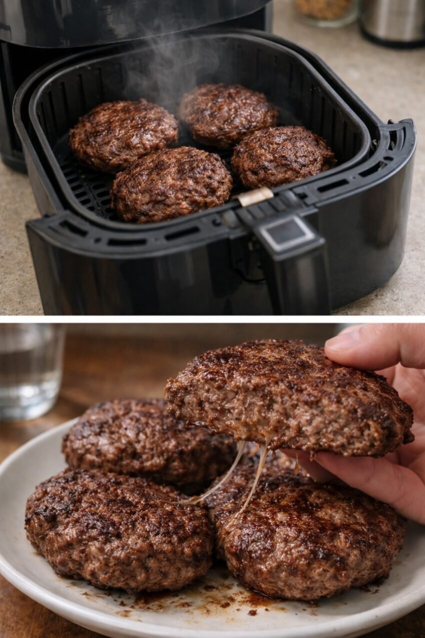 💡 Pro tip: For juicier patties, you can mix a splash of water or Worcestershire sauce into the ground beef before shaping. Still keeps it “2-ingredient” if you only count beef + salt.