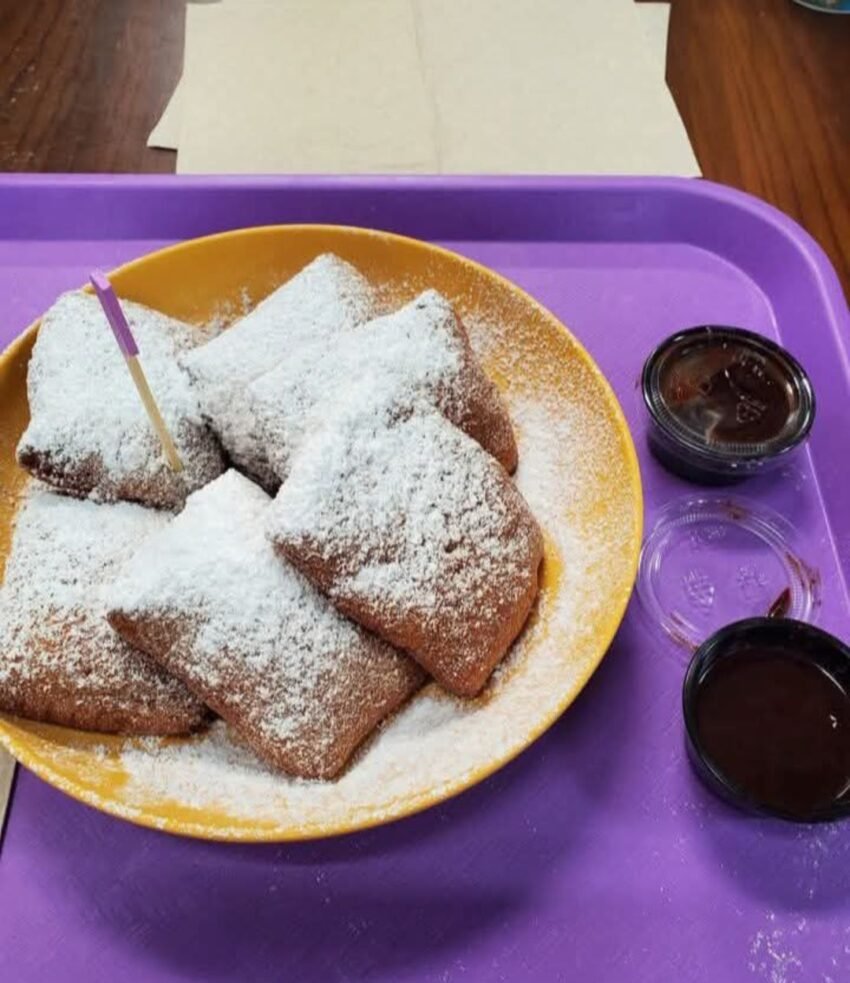 Classic New Orleans–style French doughnuts: light, square, deep-fried dough absolutely buried in powdered sugar. Best eaten hot, preferably with café au lait.