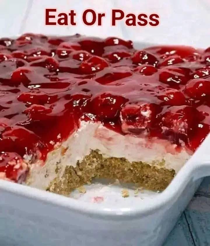 A creamy, nostalgic layered dessert with a buttery graham crust, fluffy cream cheese filling, and sweet cherry topping — perfect for potlucks and holidays.
