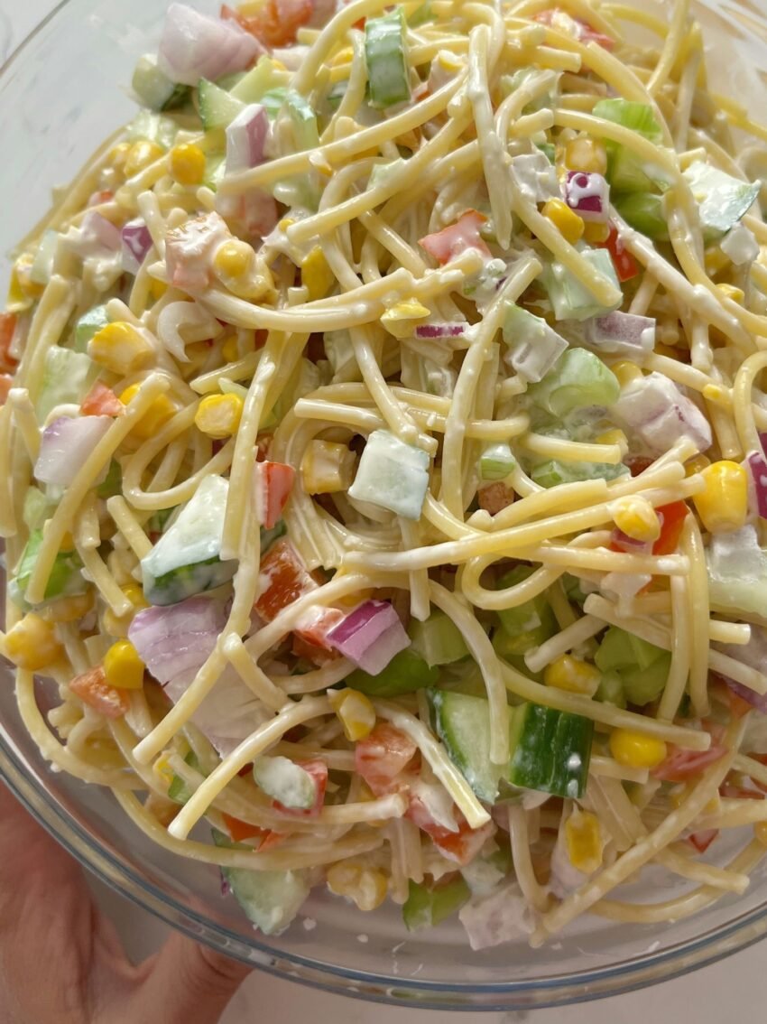 Ah yes! Confetti Salad is a fun, colorful, and creamy salad thatโs perfect for parties or a side dish ๐ฅโจ. Itโs called โconfettiโ because of all the bright veggies mixed in!