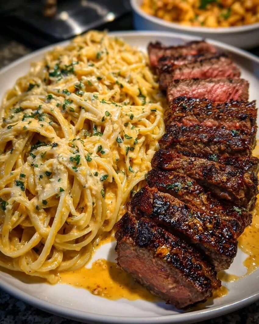 Here’s a Creamy Garlic Pasta with Steak recipe that’s rich, comforting, and easy to make 🍝🥩