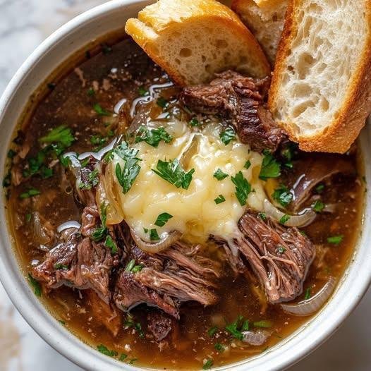 Here’s a rich, comforting French Onion Beef Short Rib Soup recipe — deep caramelized onion flavor with tender, fall-off-the-bone beef 🍲🥩🧅