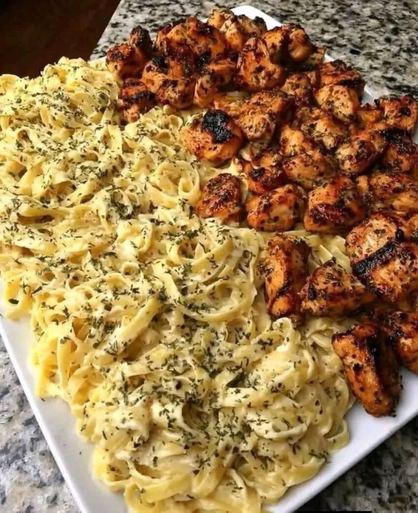 Here’s a creamy, garlicky, indulgent Garlic Butter Chicken & Linguine in Alfredo Sauce recipe—restaurant-style at home 🍝🧄🐔