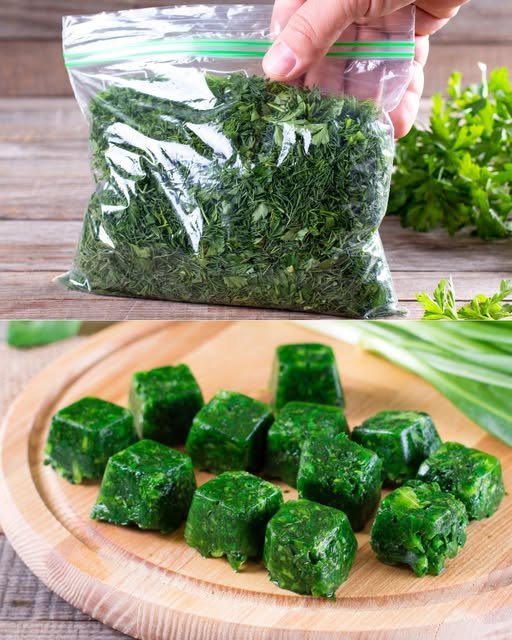 Ice cube method: chop → add water or olive oil → freeze