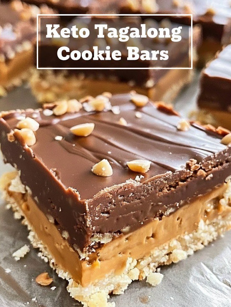 Oh, yes! 🍫🥜 Keto Tagalong Cookie Bars—basically a low-carb, sugar-free spin on the classic Girl Scout cookie: a crispy shortbread base, peanut butter layer, and chocolate topping, all keto-friendly. Here’s a detailed recipe: