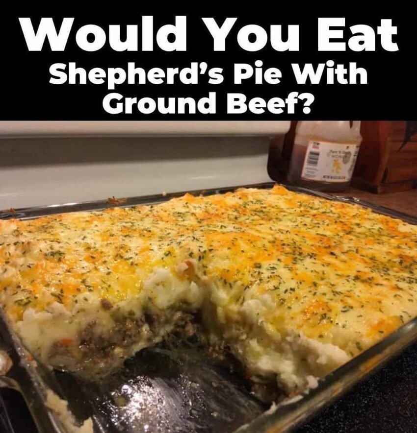Ground lamb alternative: Traditional shepherd’s pie uses lamb instead of beef.