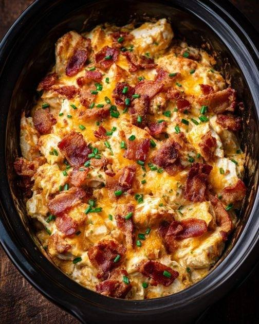 Here’s a cozy, family-friendly Slow Cooker Cheesy Bacon Ranch Chicken Casserole 🧀🥓