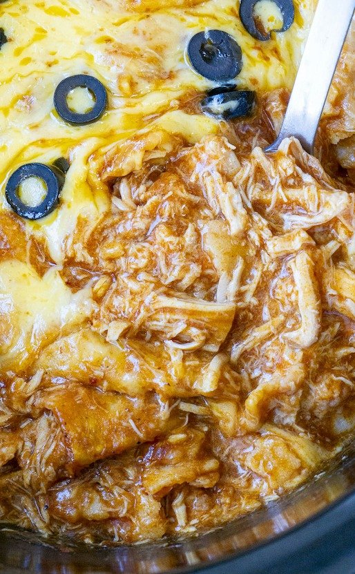 Here’s a slow cooker version of Chicken Enchiladas—super easy, creamy, and full of flavor. You basically layer everything in the crockpot and let it cook—no oven needed. 🌮🐔