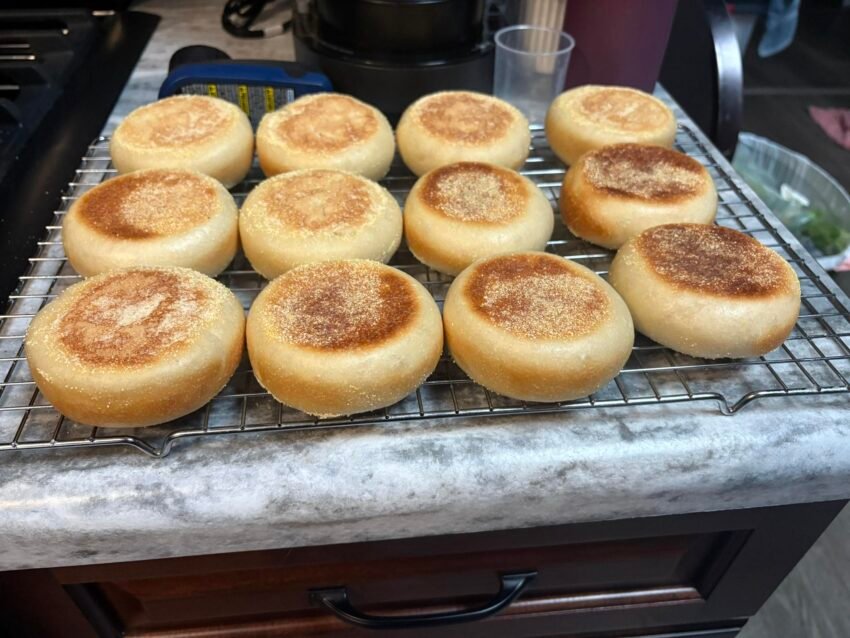 Here’s a simple and tasty recipe for Sourdough English Muffins—crispy on the outside, soft and airy inside, perfect for breakfast sandwiches or with butter and jam.