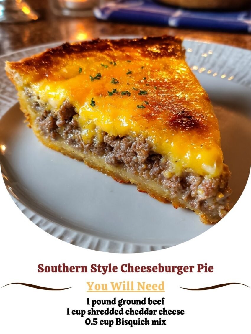 Southern Style Cheeseburger Pie is savory, cheesy, and cozy—somewhere between a cheeseburger and a baked casserole. Super easy, family-friendly, and perfect for busy nights.