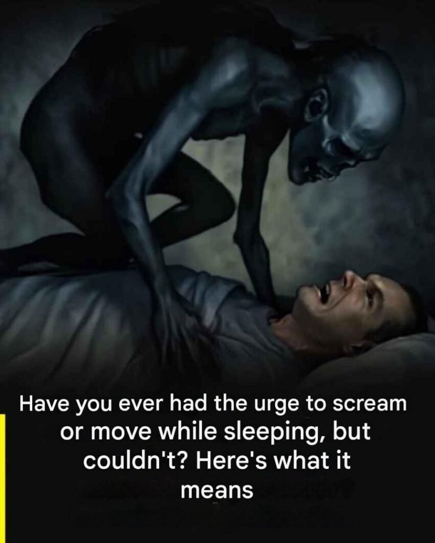 You’re describing sleep paralysis: a state where the mind wakes up before the body does. Consciousness clicks on, but the muscles are still switched off, locked in the same paralysis that normally keeps us from acting out our dreams.