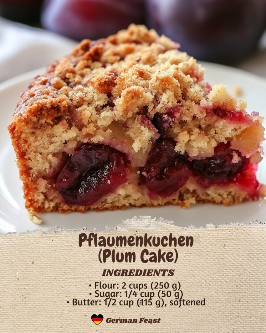 Ohhh yes — Traditional German Plum Cake (Pflaumenkuchen) 🍑🍰 — tender yeast or shortcrust base, juicy plum topping, sometimes a streusel crown. Classic, rustic, and slightly tangy-sweet. Here’s a home-friendly, traditional version.