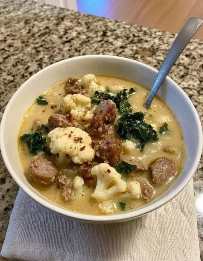 Hereβs a lighter, low-carb twist on Zuppa Toscana using cauliflower instead of potatoes π₯¦π₯¬π²